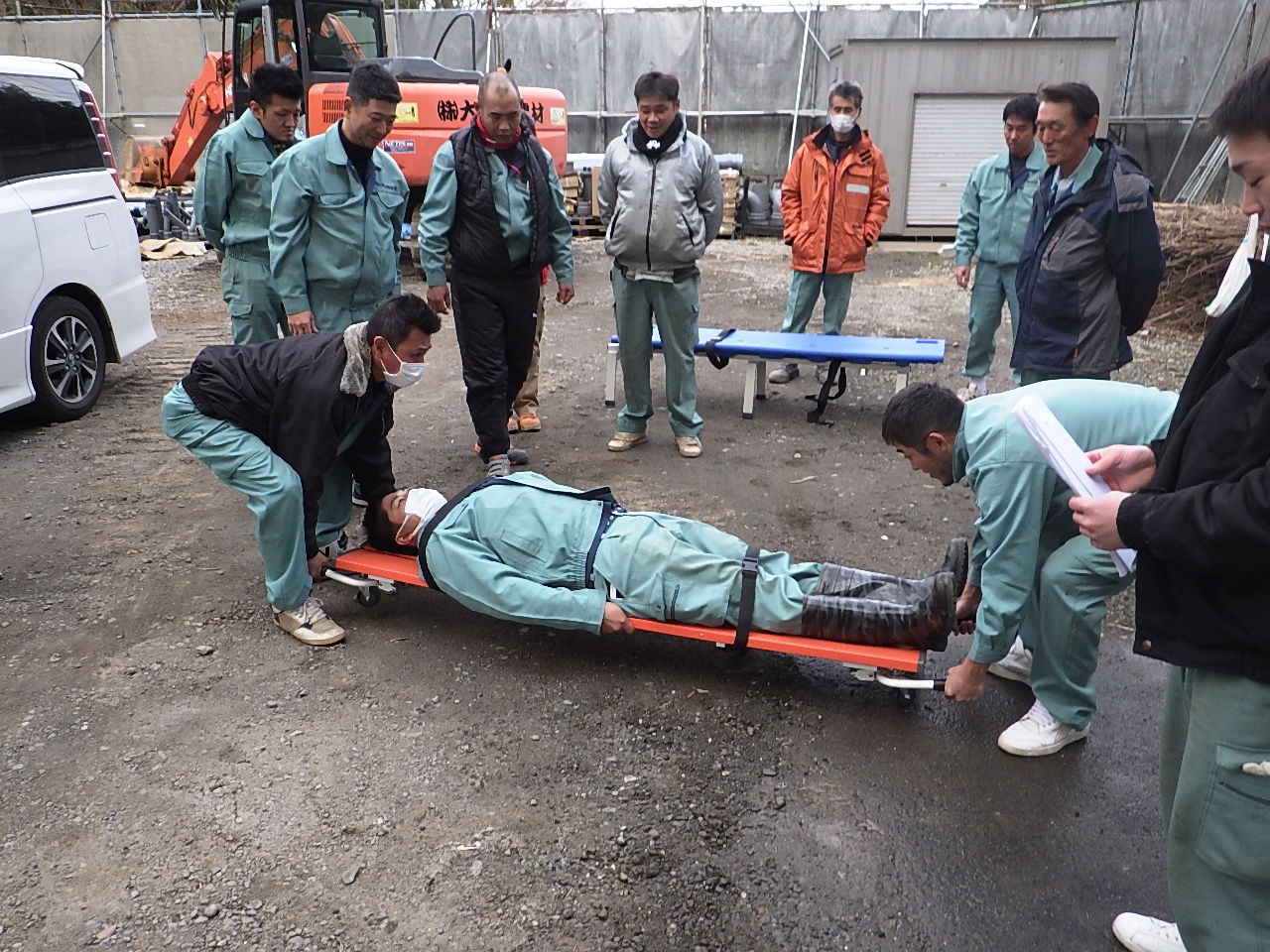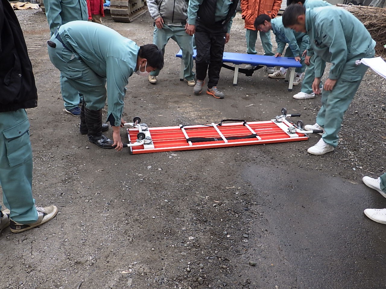 急病人や負傷者発生などの緊急事態に活躍するベンチの使い方を学びました。