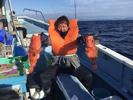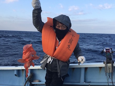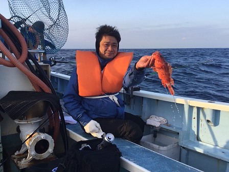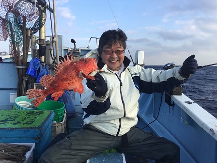 この日は甘鯛を釣る予定が、高級魚のオニカサゴを釣りまくる集団。