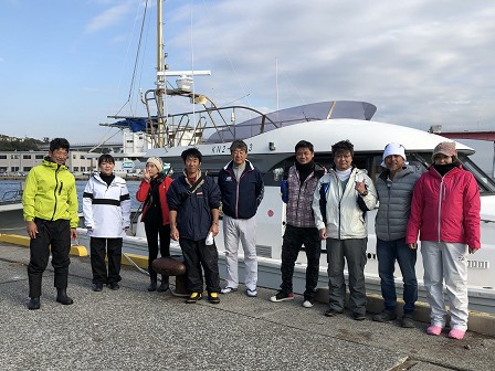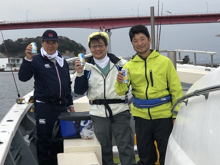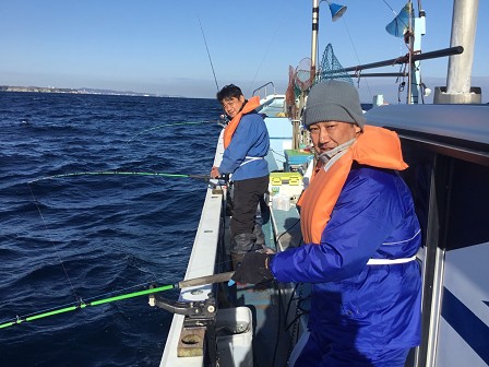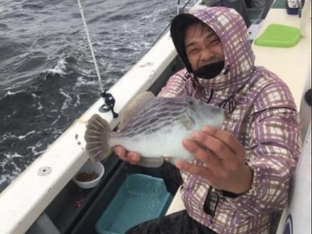寒空の中、元気にかわはぎ釣り。優勝者はチェックの彼。